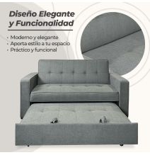 Sofá Cama 2 Plazas con Reposabrazos, Diseño Moderno y Elegante, Color Gris,...