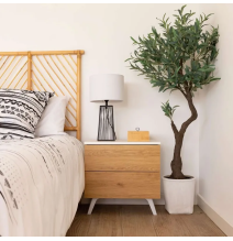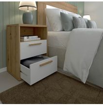 Esta mesilla de noche es la mezcla perfecta de practicidad y diseño. Con su acabado en roble albar y blanco poro, y tiradores de madera que aportan calidez, es ideal para crear un ambiente acogedor y con personalidad. Su diseño de líneas limpias encaja perfectamente en decoraciones contemporáneas, nórdicas o juveniles. -