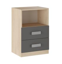 Mesita de noche 2 cajones Moderna acabado Gris/roble 56.5cm(alto) 40cm(ancho)...