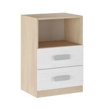 Mesita de Noche 2 cajones y 1 Estante, Mesilla de Noche,Color Blanco y roble,...