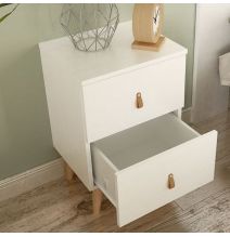 Meyvaser Mesita de noche 2 cajones Color blanco y Natural 52 cm (ancho) x 50...