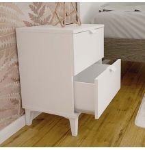 Organiza tu dormitorio con elegancia gracias a esta mesilla de noche de 2 cajones. Su acabado en blanco poro y líneas limpias aportan un toque de modernidad atemporal, ideal tanto para espacios modernos como clásicos o de inspiración nórdica. -