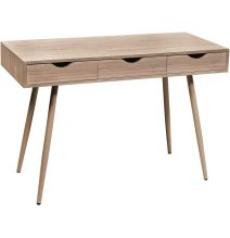Práctico Espacio de Almacenamiento Este escritorio cuenta con tres cajones que ofrecen un amplio espacio de almacenamiento, perfecto para mantener tus documentos importantes y materiales de oficina organizados y al alcance de la mano. La superficie de trabajo es generosa, brindando suficiente espacio para que puedas trabajar cómodamente y mantener tus herramientas de trabajo ordenadas. Dimensiones Perfectas • Ancho: 120 cm • Fondo: 50 cm • Alto: 72 cm Materiales de Calidad • Estructura: Melamina • Cajones: Acabado Cambria Grafito Mantenimiento Sencillo Para mantener tu escritorio en óptimas condiciones, simplemente límpialo con un paño humedecido en agua tibia y jabón neutro. Evita el uso de productos de limpieza corrosivos, abrasivos o amoniacales, ya que pueden dañar los materiales. Te recomendamos leer detenidamente toda la documentación que se entrega junto al producto para un correcto cuidado.